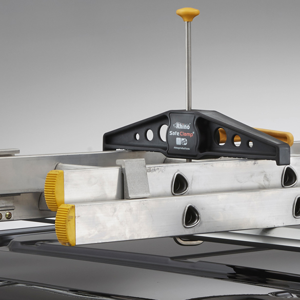 Rhino SafeClamps are  revolutionary universal clamps designed for the safe transporting and securing of ladders on to vehicle roof bars and racks. Supplied as a pair, the Rhino safeclamp will fit most roof bar and rack profiles, and most types of 2 or 3 section ladders (max ladder weight 40kg).