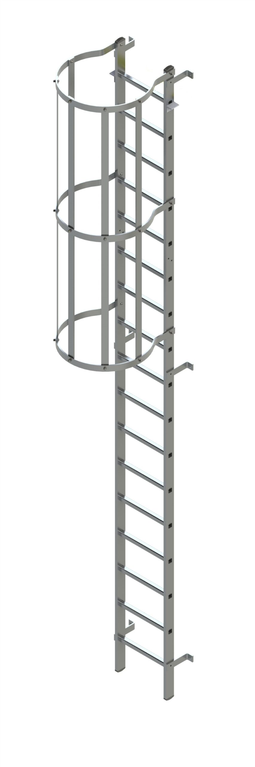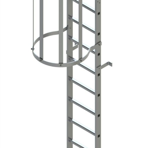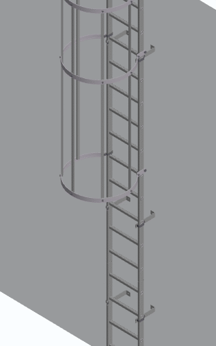 - Sturdy vertical ladder supplied with wall mounting brackets and hooped cage above 2.0m