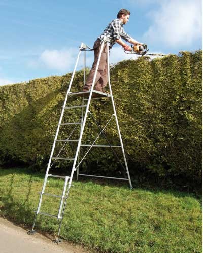 The HENCHMAN Hi-Step range of garden maintenance ladders have been designed and built here in the UK to fulfill the needs of the professional groundsman and serious gardener. Welded aluminium construction ensures they are both strong, non corrosive and lightweight. Five models plus optional extenders cover any height you are likely to encounter in the garden, allowing you to work safely and comfortably amongst the highest fauna & flora, while making hedge maintenance a breeze.