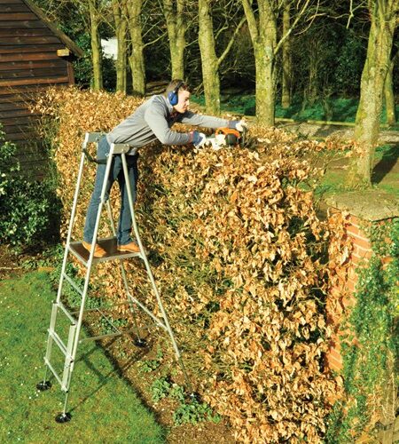 The HENCHMAN ‘Hi-Step’ MIDIÂ is our answer, designed to work effectively and safely in the garden and around the home. It is built to a very high standard using aluminium which makes it both lightweight and yet extremely strong…it weighs only 23kg. making it easy to move around …. and being aluminium, it will not rot, rust or corrode and requires no maintenance.