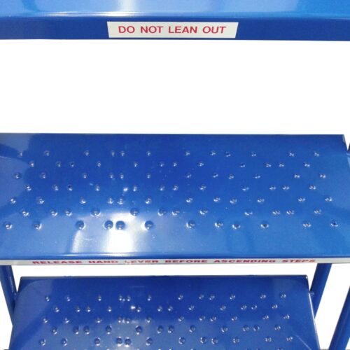 Our range of fully welded extra-wide industrial mobile steps offer a full range of sizes between 3 and 15 treads to cover all likely situations within a busy warehouse environment. Their heavy duty steel construction makes them suitable for all commercial, retail, construction, office, warehouse and even military applications. Tread width is a generous 700mm x 200mm deep and the top platform is 700mm x 400mm. Double handrails, kick plates and anti-ascent lever operation are just some of the features that tick all the boxes when it comes to Health & safety in the workplace.