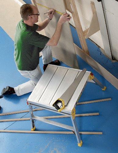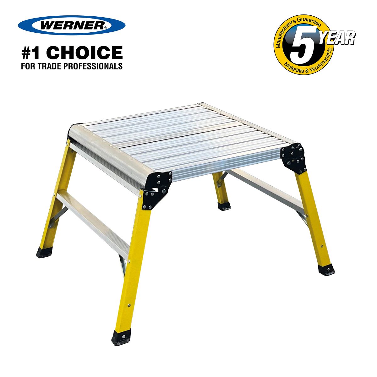 • Ribbed platform and treads provide a slip-resistant surface while working