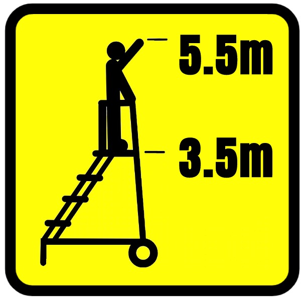 Tread size throughout the range is 700mm x 200mm and the top platform is 700mm wide x 400mm deep but can be increased. Treads are punched & raised for ultimate anti-slip resistance… all models are fitted with full length double handrails, kicking plate, fail-safe anti-ascent brake and large rubber tyred rear wheels as standard, while the optional features listed below can be specified at extra cost… call us on 0300 303 22 99 for a quotation on your special requirements.