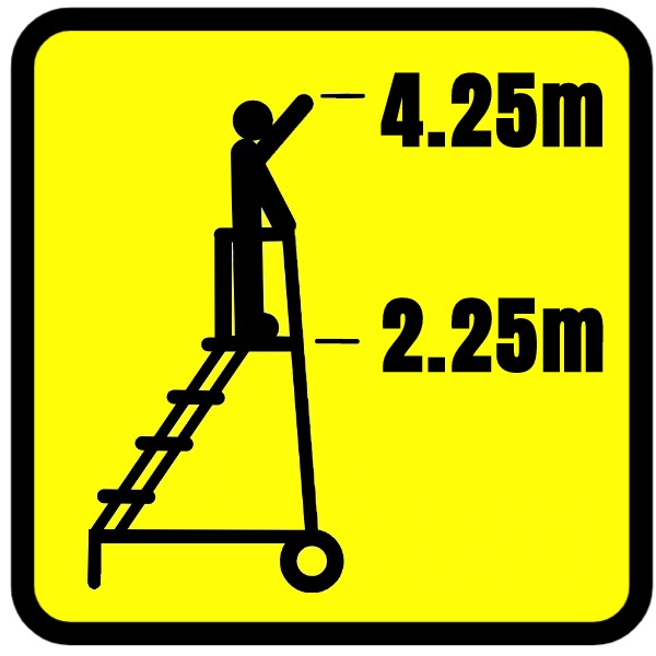 Tread size throughout the range is 700mm x 200mm and the top platform is 700mm wide x 400mm deep but can be increased. Treads are punched & raised for ultimate anti-slip resistance… all models are fitted with full length double handrails, kicking plate, fail-safe anti-ascent brake and large rubber tyred rear wheels as standard, while the optional features listed below can be specified at extra cost… call us on 0300 303 22 99 for a quotation on your special requirements.