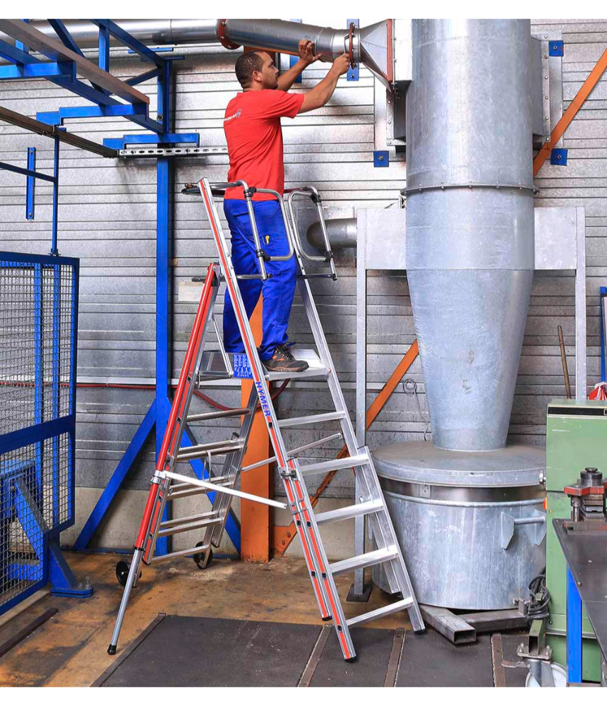 - Safe hands-free working due to handrails and kneebar on all sides.