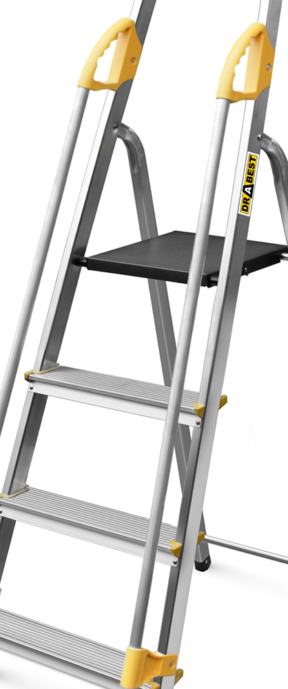 Our Supa-Step range of aluminium step ladders are a great range of lightweight trade quality steps sporting dual safety rails and a handy top mounted tool tray as standard. These step ladders will immediately feel at home in the retail sector, where the fairer sex will appreciate their light weight, comfortable treads and safety handrails. The long handrails give added security and user confidence when climbing and descending, so important when working at height, and offer increased security and reassurance when working at the top. The step folds away simply and easily when not in use. These stepladders are tested and certified to the EN131 European trade standard for added assurance of quality and reliability. The large top platform tread is very comfortable to stand and work from for a range of jobs and comes with a fitted tool tray at the top of the handrail that snaps and locks in place. to carry your small tools and materials.