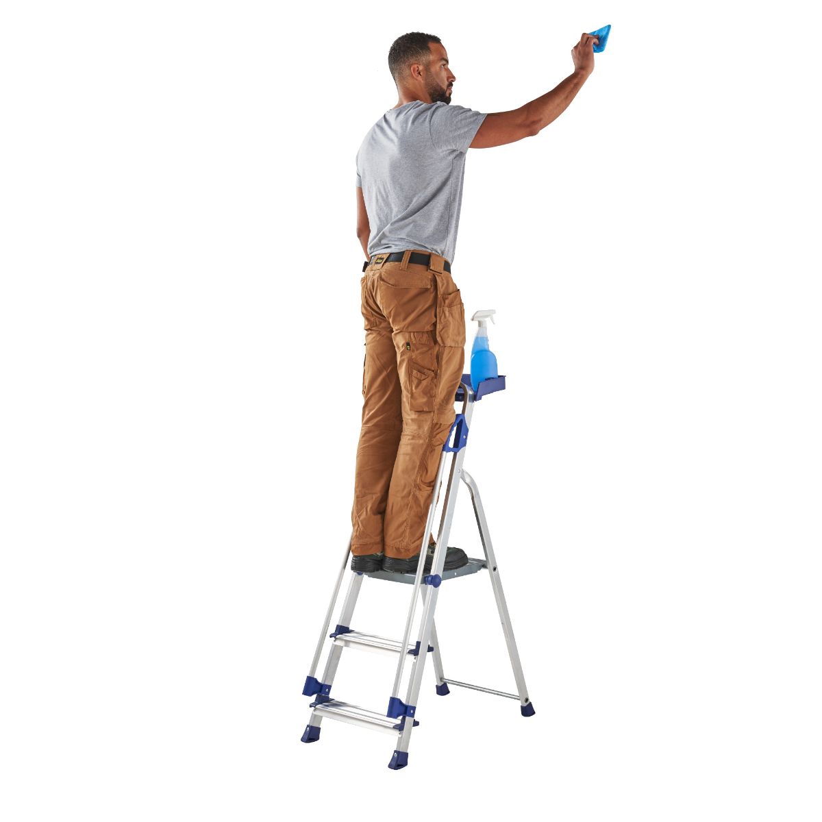 Our Professional workstation range of aluminium step ladders is perfect for pro users as well as homeowners. They are a practical step ladder featuring full-length twin handrails and a useful tool tray at the top and feature deep treads for superb comfort. The long handrails give added security and user confidence when climbing and descending, so important when working at height, and offer increased security and reassurance when working at the top. The step folds away simply and easily when not in use. These stepladders are tested and certified to the latest EN131 Professional (2018) European standard for added assurance of quality and reliability. The top platform tread is very comfortable to stand and work from for a range of jobs and comes with a fitted tool tray at the top of the handrail that snaps and locks in place.