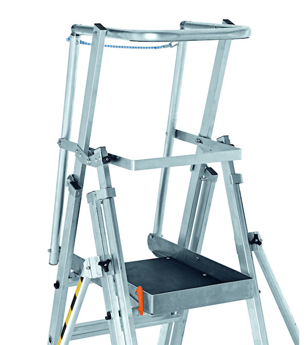 - Large standing platform 665 mm × 440 mm, with guard rail and knee bar.