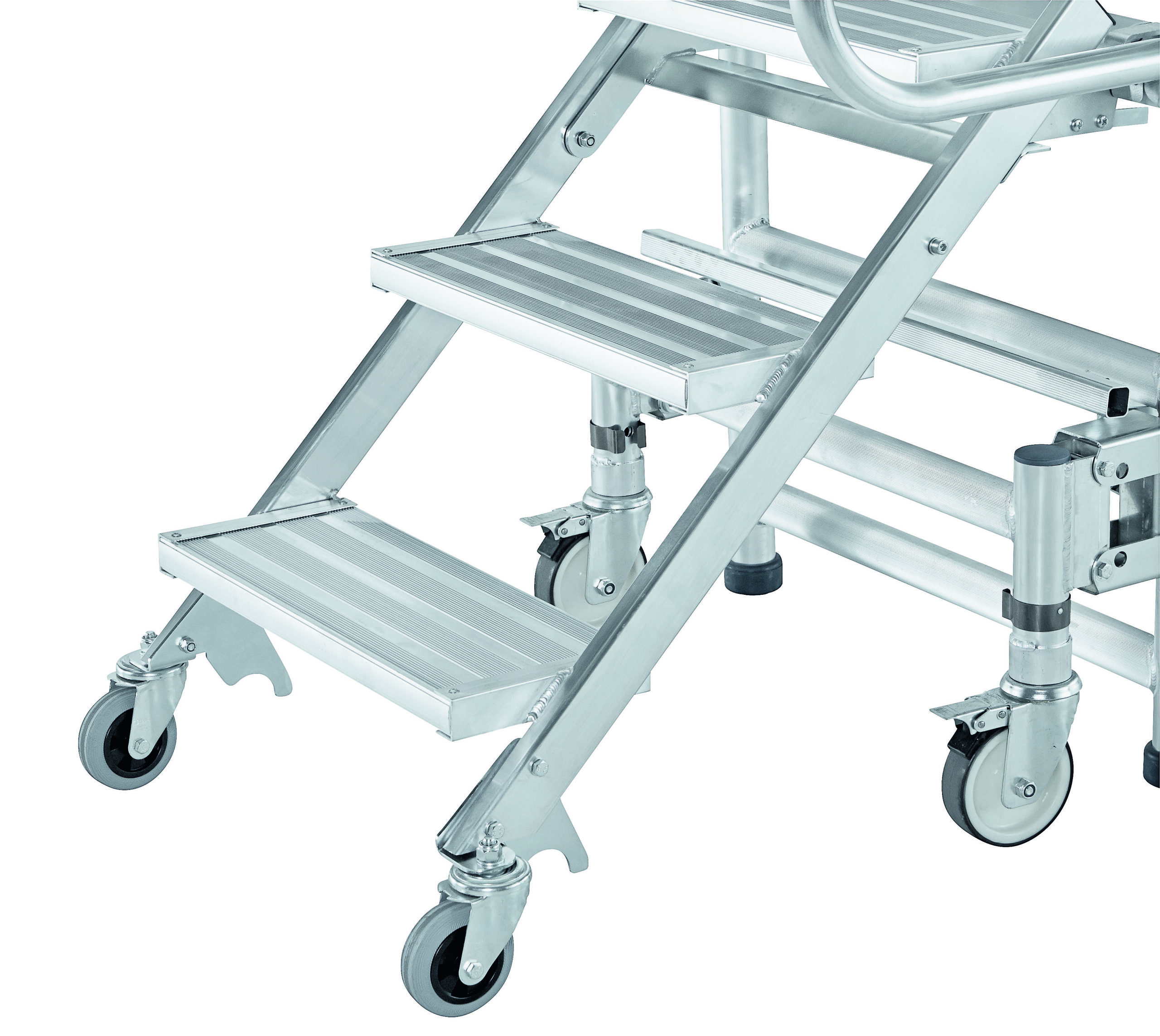 - Ready-for-use in no time through a central foot-operated brake on the access steps.